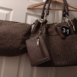 Brand new with tags Wilson leather Brown and Beige tweed 3 in 1 handbag with a cosmetic bag and change wallet