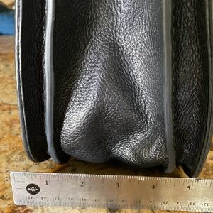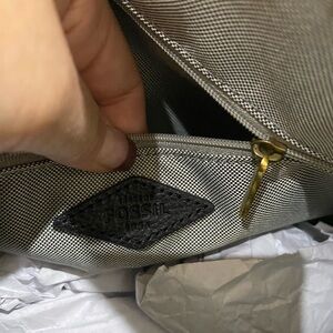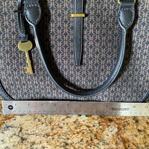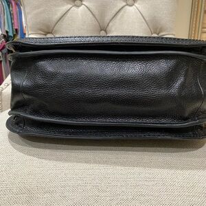 Black Guess purse with multiple pockets , has shoulder strap, in great contrast