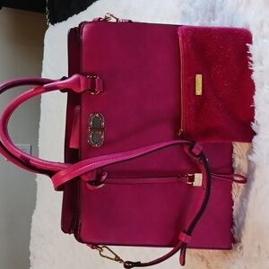 Brand New unused Fushia Handbag with shoulder strap and matching wristlet. I've also included a small Fushia cosmetic bag from ipsy