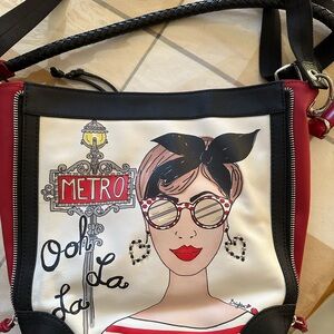 Brighton Collectibles handbag. Can be work as a shoulder bag or a crossbody. Leather. Crossbody strap is material. Magnetic closure.