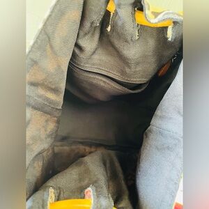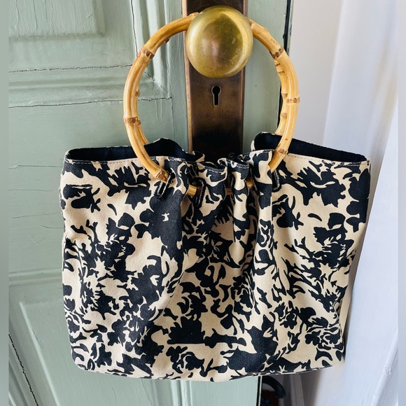 Bamboo style handles, fabric bag. EUC. Clean inside & out. Inside pocket. From no heavy scent, non smoking home.