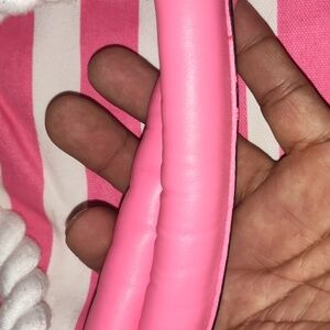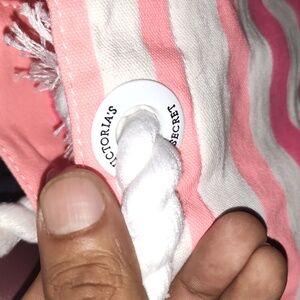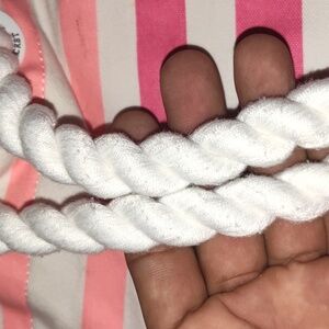 Handbag or shoulder bag. Wonderful colors. Pink, white,black. Smooth handles and ropes tides. Nice and clean. No rips or tears. Perfect for travel,work,school,road trips,church,picnic,etc. Please like and enjoy.