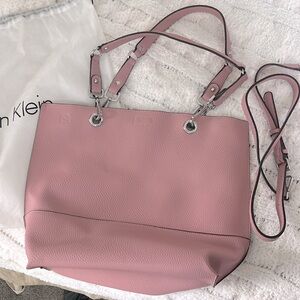Calvin Klein handbag with optional shoulder strap. Like new, without tags. Used for one event. Has removable cosmetic bag inside.