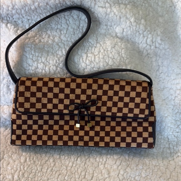 Stylish checkered women's bag in brown and tan. Perfect for any occasion.