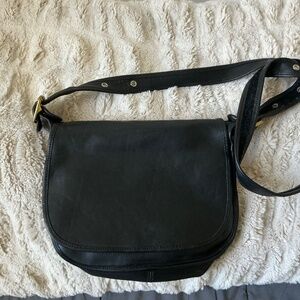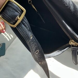 black leather vintage Coach, well oiled and maintained, minimal use, suede inside and inner material is in impeccable condition. Hard to find this quality.