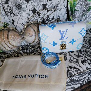 Beautiful blue and white spacious cross body handbag.