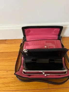 Black Hobo clutch with handle. All in one wallet/purse. One small mark interior lining/slight scuff in exterior