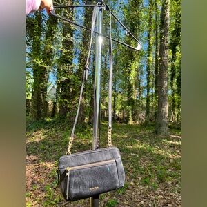 1 CALVIN KLEIN Black Leather Zippered Double Pocket Crossbody Bag | Main Pocket w/ Inner Phone Pouch, Zippered Pocket & Pouch on Back | Gold Details | Used Like New