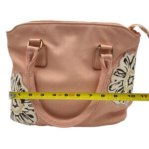 Handbag Crossbody Wristlet Wallet Makeup Bag Pink With Flowers Soft Vinyl