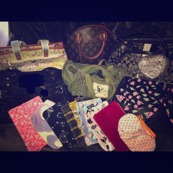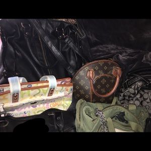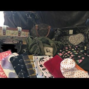 Trying to clean out the closet. Authentic coach and authentic betsey Johnson. The small bowling bag is NOT a Louie and is NOT a replica. It’s just a plain bowling style bag. Some large bags some small and come cosmetic bags. Can be sold separately.