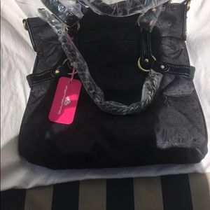 Brand new cute handbag. Has a nice bright lining to find all your stuff. The bag measures 14 1/2” width 13” height. Super cute bag, comes with a shoulder strap, dust bag and charm.