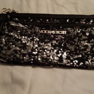 Two small handbags one is Victoria's Secret the other is unbranded both are metallic and shiny