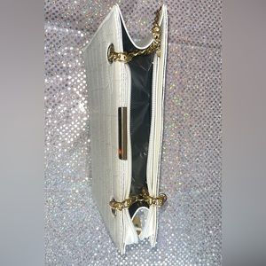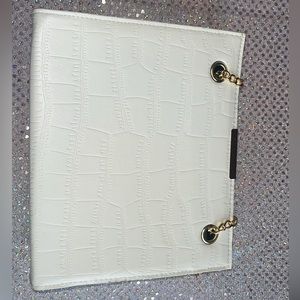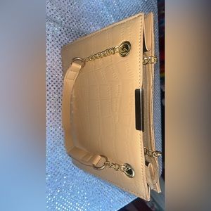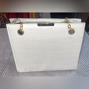 Medium size handbags. One is white with gold on straps. The other is light Carmel color with gold on straps. Each is $13 or both for $20