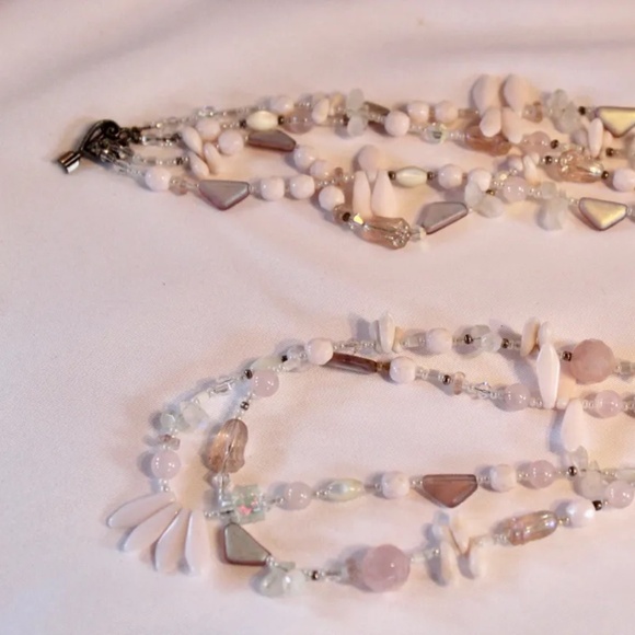 Handbeaded Double Strand Necklace, Mixed beads in Whites and Pale Pinks