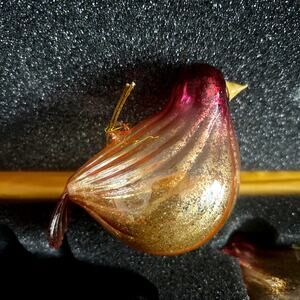 Handblown Art Glass Red & Gold Bird Holiday Ornaments Spun Glass 4.5" Set of 6