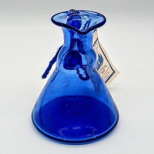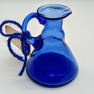 Handblown Blue Willow Shop Blue Glass Pitcher Vase NWT