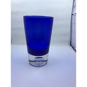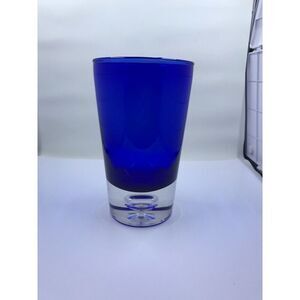 Handblown Cobalt blue glass captured bubble in base 12oz glass