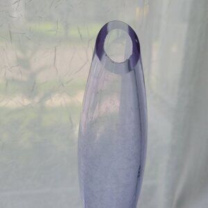 Enhance any space with this stunning handblown purple glass vase. Its tall, elegant design showcases artistic craftsmanship, making it an exquisite decorative accent.