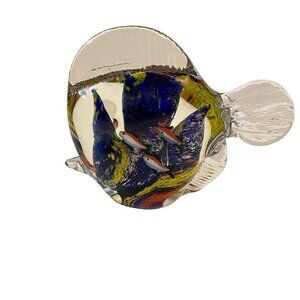 Handblown Glass Fish Figurine With Colorful Abstract Design paper weight