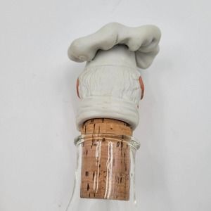 Handblown Glass Flask With Chefs Head Stopper No Markings Amazing Detail