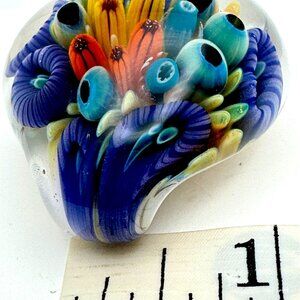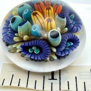Handblown Glass Ocean Reef Implosion Pendant 42 gram wt 1.5" x 1.25" Gift