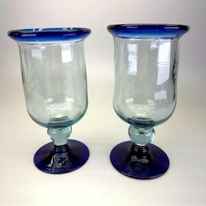 The slight variations in shape and size are characteristic of hand-blown glass, adding to their unique charm. Approximately 7” tall