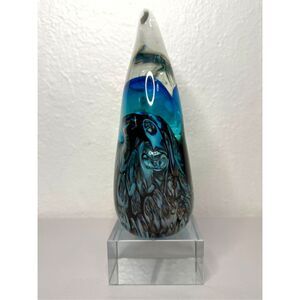 Handblown Murano? Glass Angel Fish Art Sculpture Bubbles Footed Plate 10”