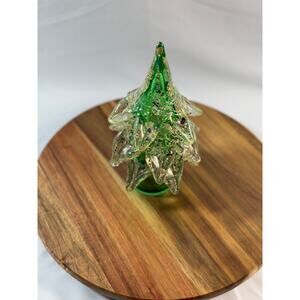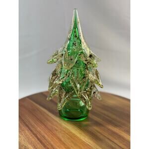 Handblown Murano Glass Christmas Tree – 8.5" Green & Gold Italian Blown Glass