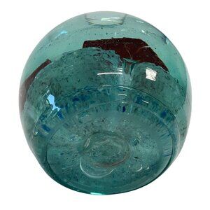 Handblown Turquoise Glass Vase With Embedded Red Flower Design