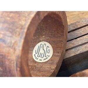 This handcarved wooden napkin ring set features charming elephant designs. Made in India, this set includes six pieces, all neatly packed in a wooden box by JCS CO.