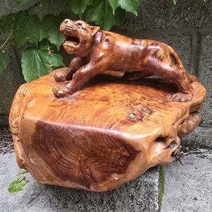 Hand-carved Tiger Statue Chinese Boxwood 12"x8.5"x8"