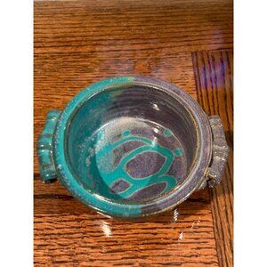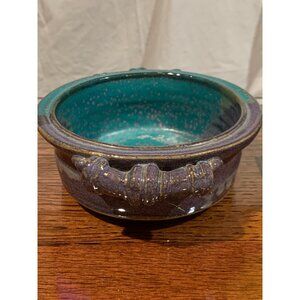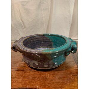 Handcrafted 5" Dia Stoneware Bowl with double handles Multicolor Glaze