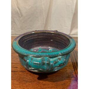 A functional and decorative ceramic soup bowl featuring a durable dual-handle design and a vibrant multicolor glaze for added aesthetic appeal. Approximate measurements handle to handle 5.75”, Dia 5”, Height 1.75”.