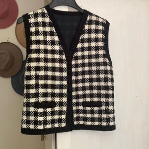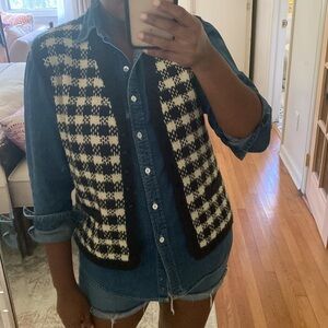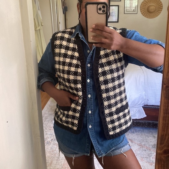 Vintage handcrafted houndstooth button down vest with front pockets lined on the inside best fits a large