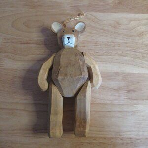 Handcrafted 9" Wooden Jointed Teddy Bear - Vintage