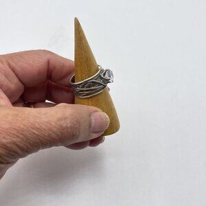 Handcrafted 925 Silver Ring With Large Clear Gemstone Intricate Band Design Size
