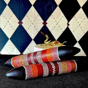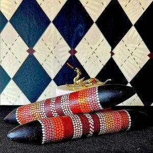 Celebrate the rich cultural heritage of Indigenous Australia with these handcrafted Aboriginal clapping sticks (also known as bilma or clapsticks). Traditionally used in ceremonies and storytelling, these sticks produce a resonant, rhythmic sound that enhances music, dance, and spiritual expression.