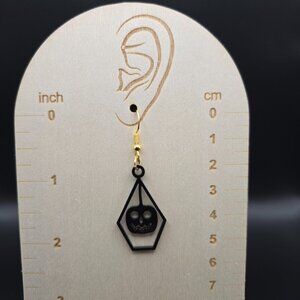 Handcrafted Acrylic Halloween Earrings - Black/White - Gold Hooks