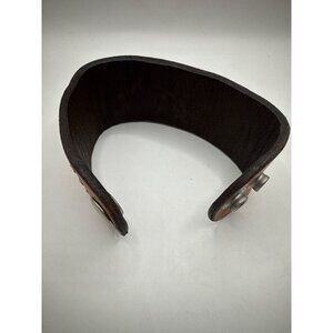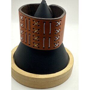 Handcrafted Adjustable Brown Leather Cuff Bracelet Decorative Stitching