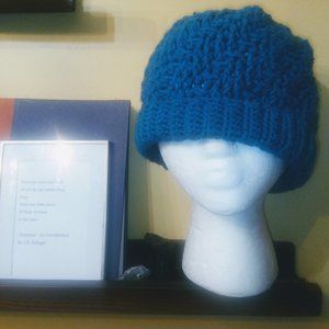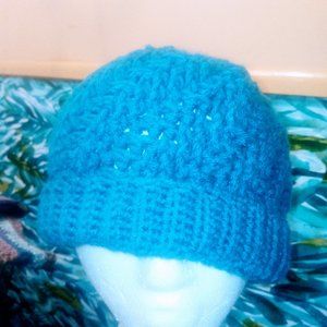Handcrafted Adult Unisex Textured Teal Hat - Beanie Skully Slouchie