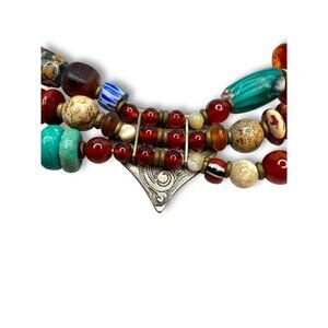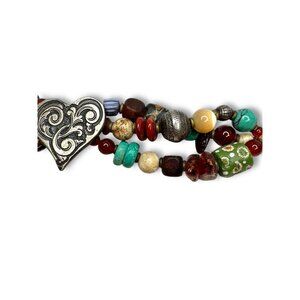 Handcrafted African Trade Bead Bracelet With Heart Centerpiece