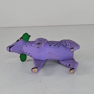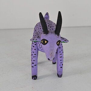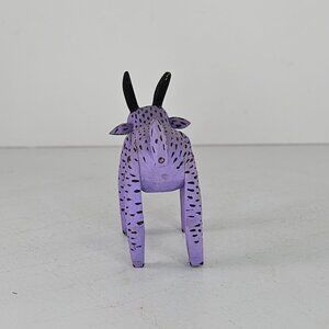 Handcrafted Alebrije Purple Spotted Goat Figurine Black Horns Santiago Family