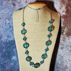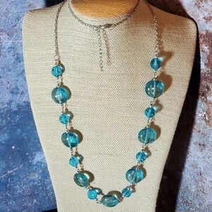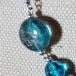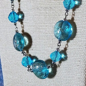 Glass and metal necklace is made with handmade Murano style glass beads
