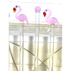 Handcrafted Art Glass Pink Flamingo Swizzle Sticks Cocktail Barware Set Of 6