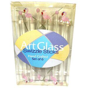 This vintage set of six handcrafted art glass flamingo swizzle sticks enhances the aesthetic of any bar setting. Each stick is adorned with a delicate pink flamingo, offering both functionality and elegance. Ideal for cocktail enthusiasts, this set is a refined addition to your drinkware collection.