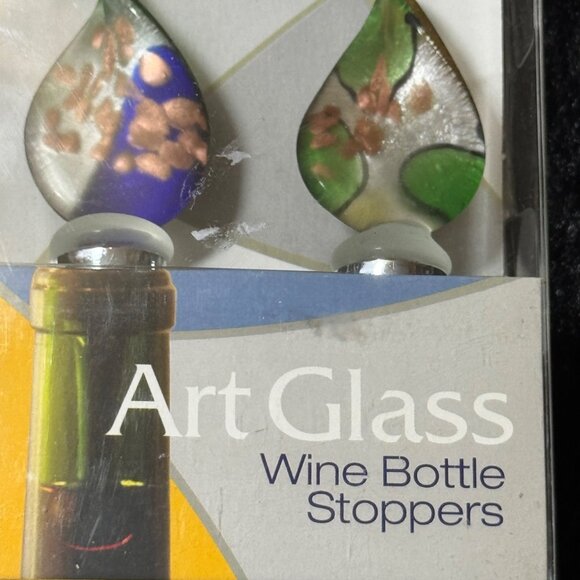 Handcrafted Art Glass Wine Bottle Stoppers Set Of 2 NEW In Package
