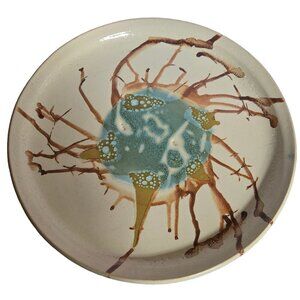 Handcrafted Art Platter Abstract Design 14 inch Signed OOAK Pottery large