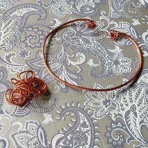 Handcrafted Artisan Copper Wire Necklace Pendant Abstract Twist Set Choker
