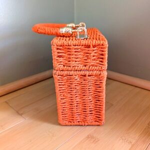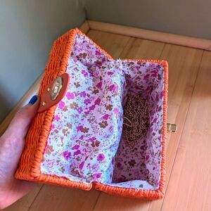 Handcrafted with straw, gold metal (stainless steel), and floral interiors. Perfect color design with bright orange 🍊, pink, and gold. The straw seat cushion is not included.