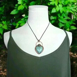 @nailtechfriend Hi dear ππ·! Of course I can help you with that! I just looked at your closet and saw the necklace. It looks like a beautiful green agate heart pendant π, the irregular line patterns you see on it are characteristic of the stone π!